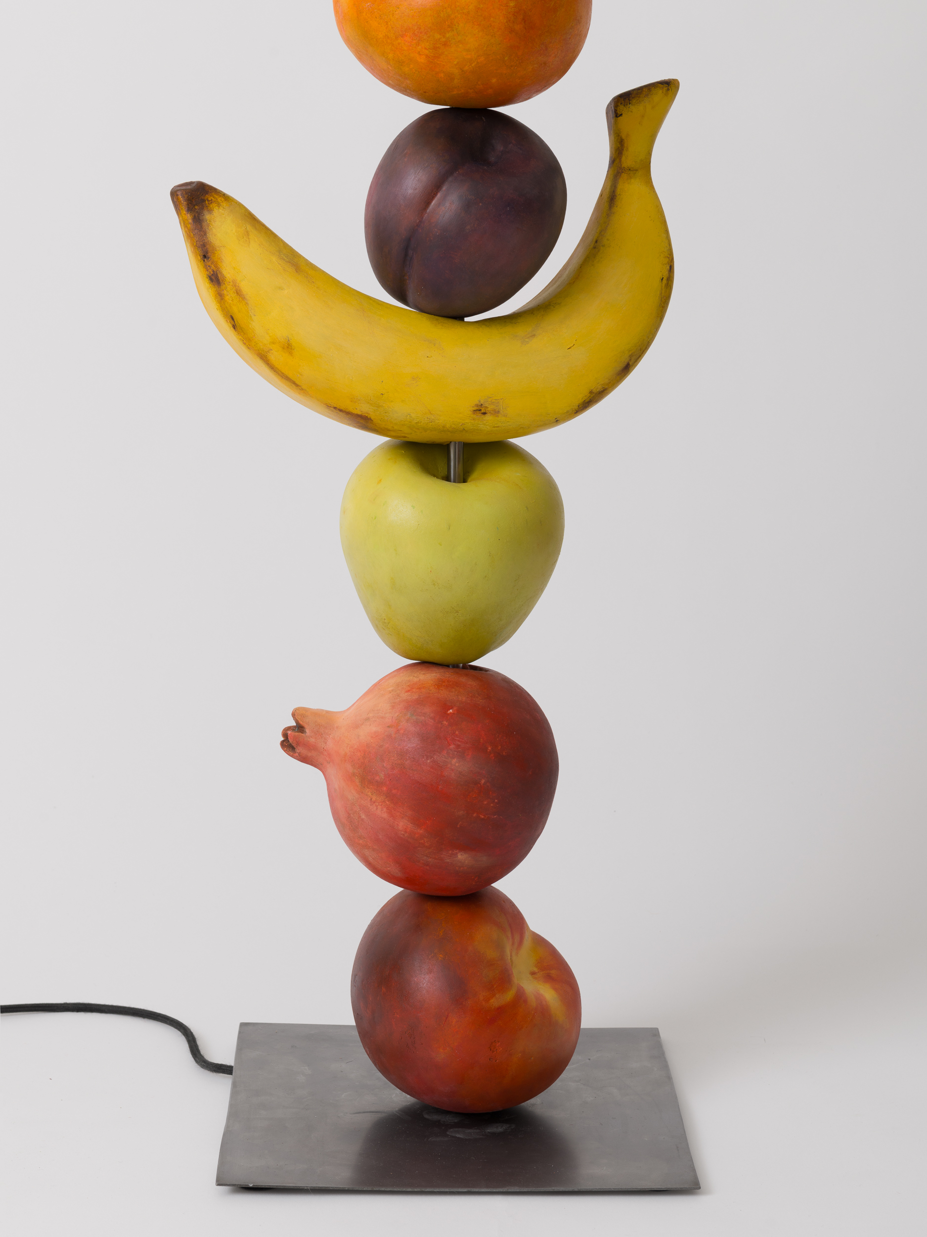 foam, resin, acrylic, oil paint, steel, light fitting, light bulb