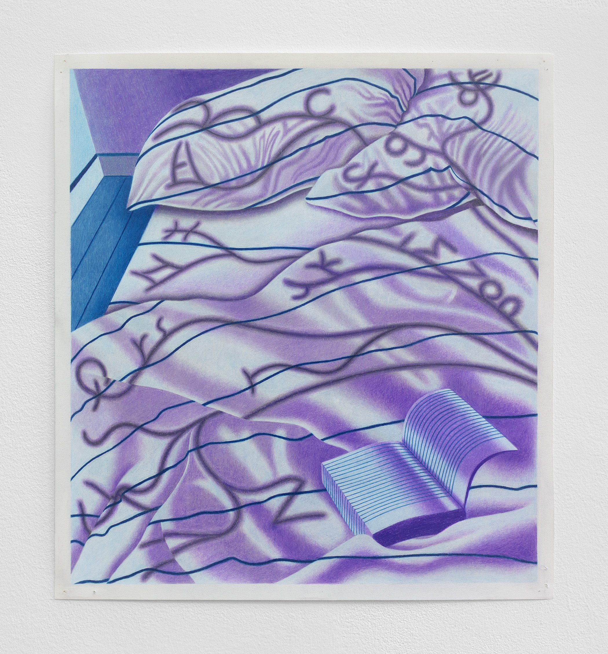 Leigh Ruple, Notebook, 2026, colored pencil on paper, 17 1/2 x 16 in (44.45 x 40.6 cm)