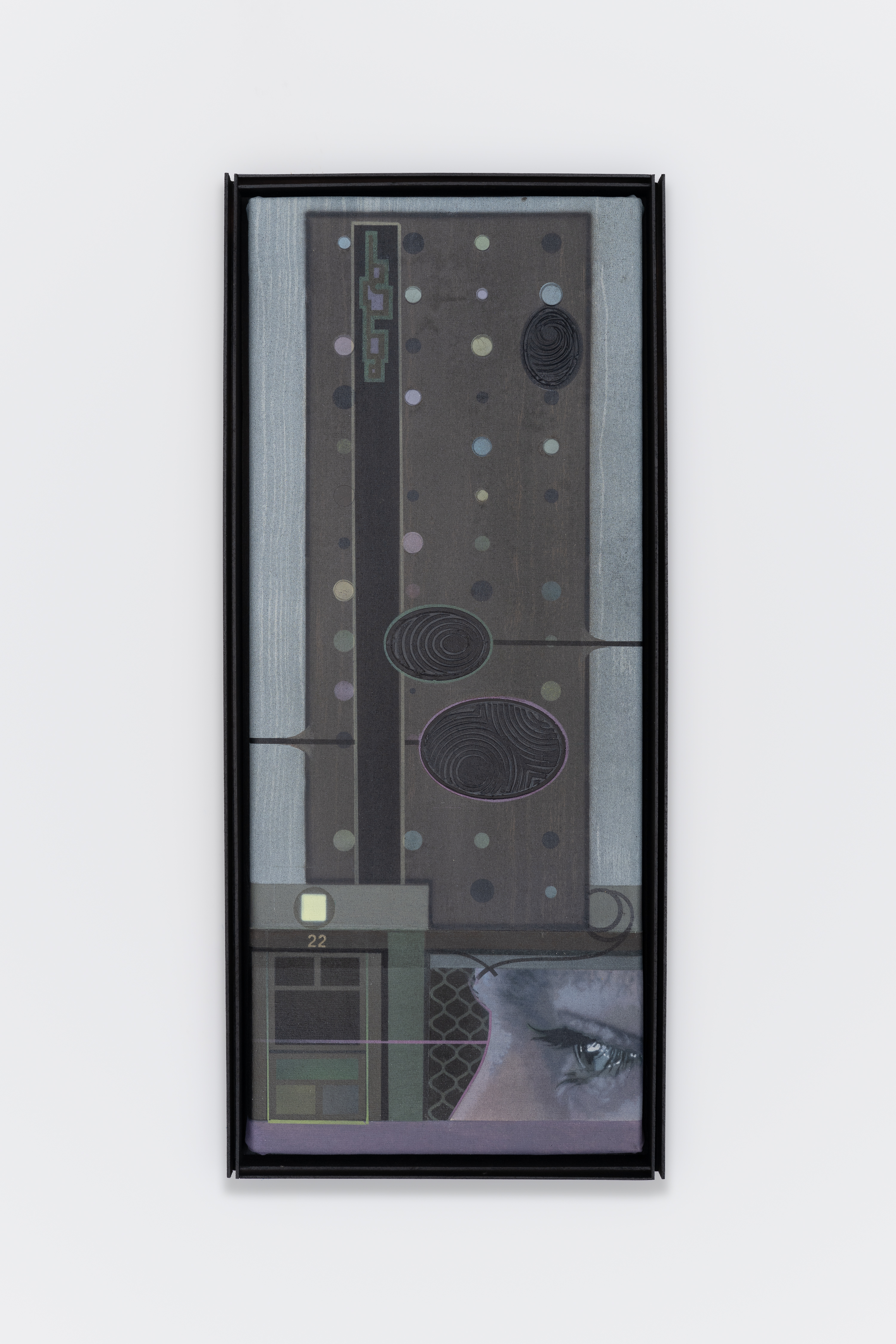 Grichka Commaret, Grande tour ( éveil en progrès ) [Grand Tower: Awakening in Progress], 2024, acrylic on canvas, 15 x 7 1/2 in (38 x 19 cm)