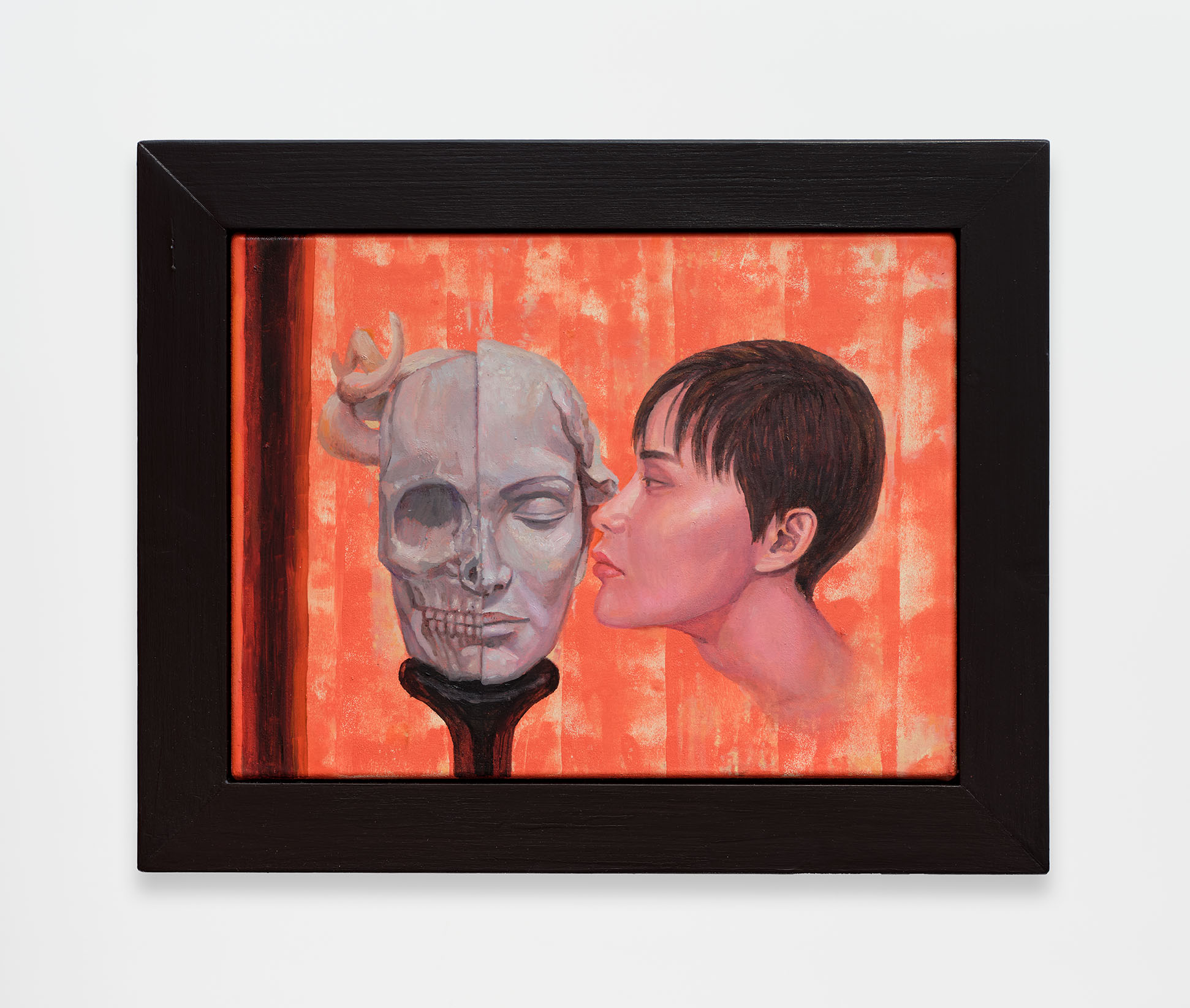 When Matsubara arrived in Vienna as a student enrolled in the Academy of Fine Arts, he immersed himself in Western European art from the early 20th century and became fascinated by the figures of the Vienna Secession and Symbolist movements, namely Oskar Kokoschka and Fernand Khnopff. All forms of romanticism seemed at once irresistible and outlandish to Matsubara—which may be why his paintings and sculptures of tragic heroes and entwined lovers seem elegant at first, and slyly satirical upon closer inspection. Infused with cultural commentary, his creations preserve the beguiling luster of romanticism, and evade the grime of realism despite their verisimilitude. Even when Matsubara depicts extreme acts of obsession and longing, the work retains a cool beauty.