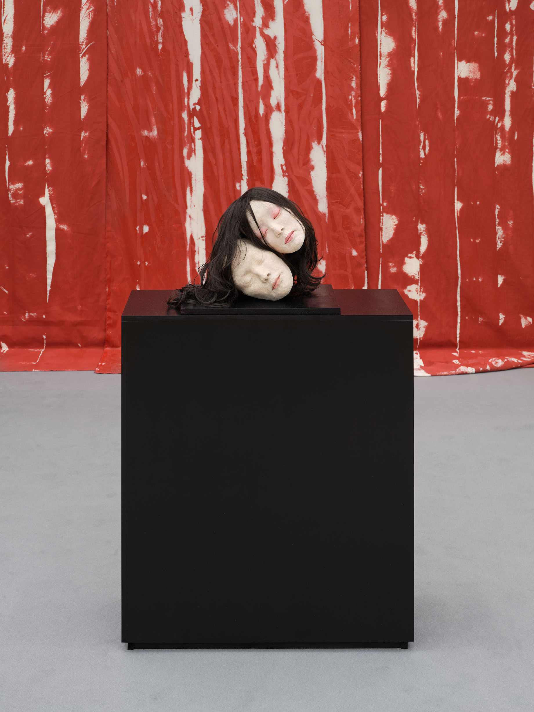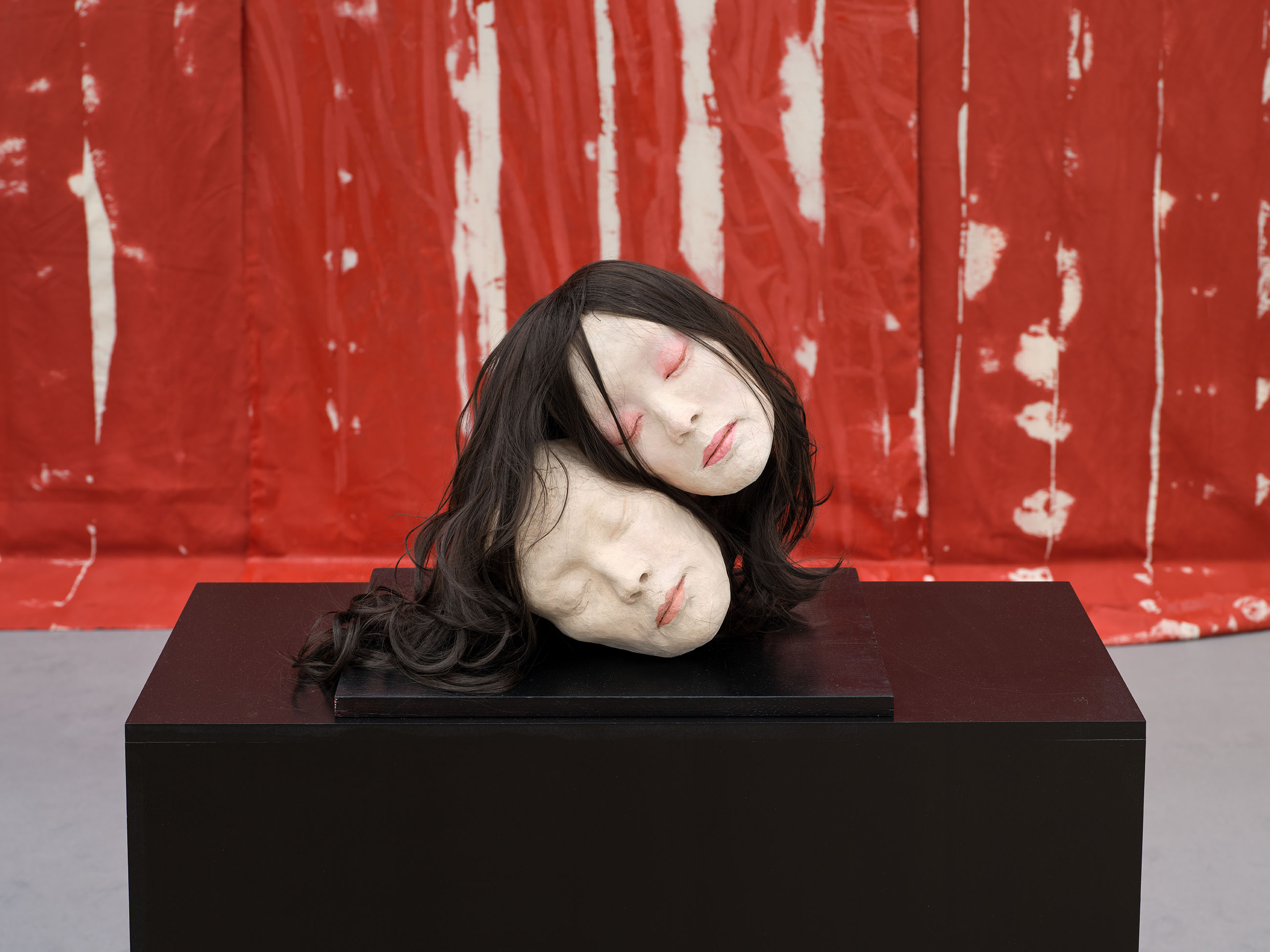 Soshiro Matsubara, Lover, 2026, glazed ceramics, oil, wig, wood, 13 3/4 x 17 3/4 x 11 3/4 in (35 x 45 x 30 cm)